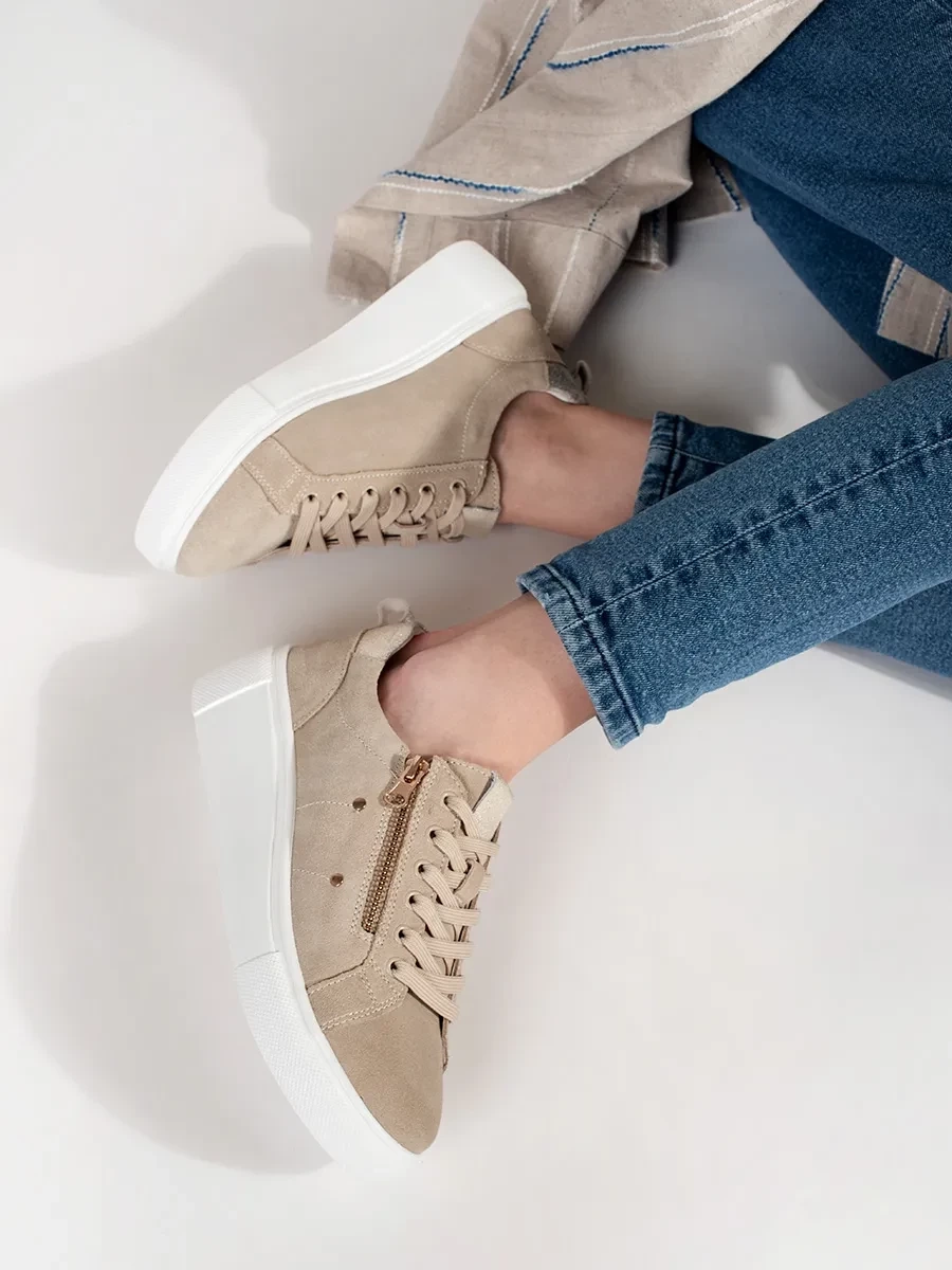 Classic beige platform sneakers for women