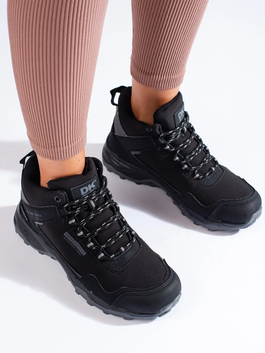 Comfortable black women's trekking shoes without heel