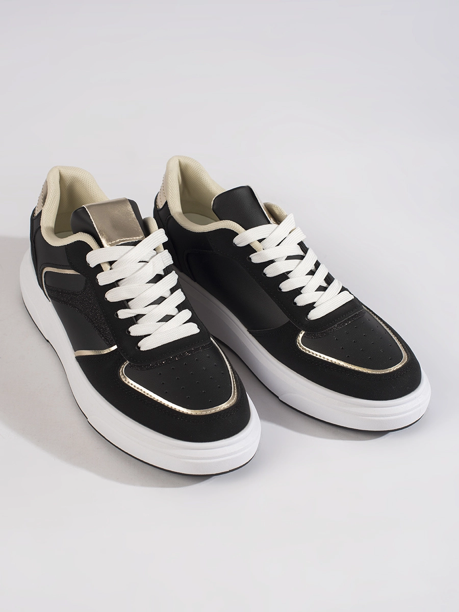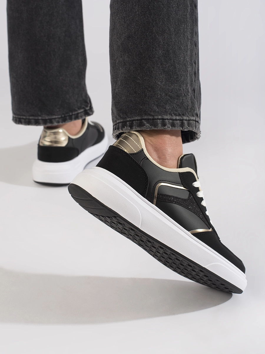 Comfortable women's black sneakers without heel