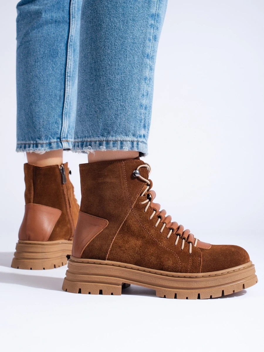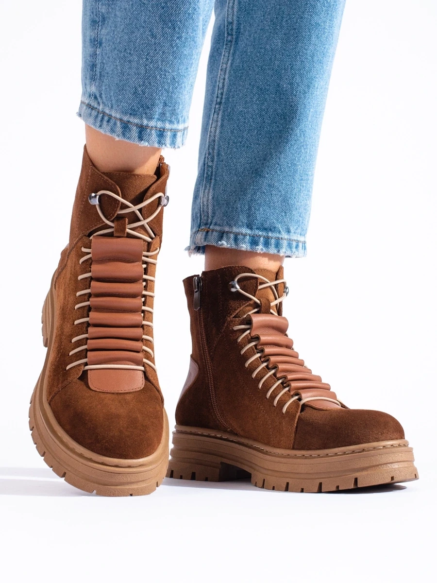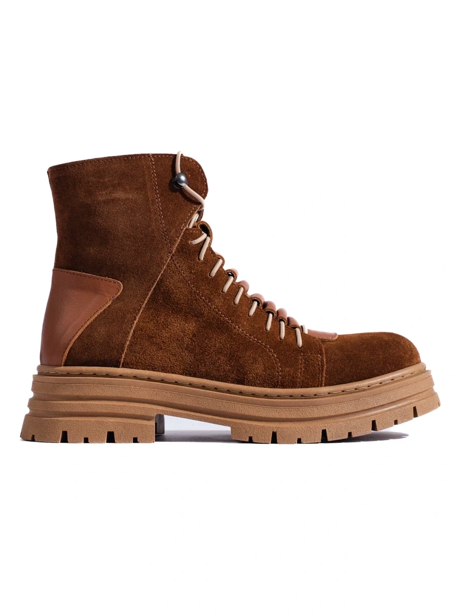 Designer beige women's flat heeled ankle boots