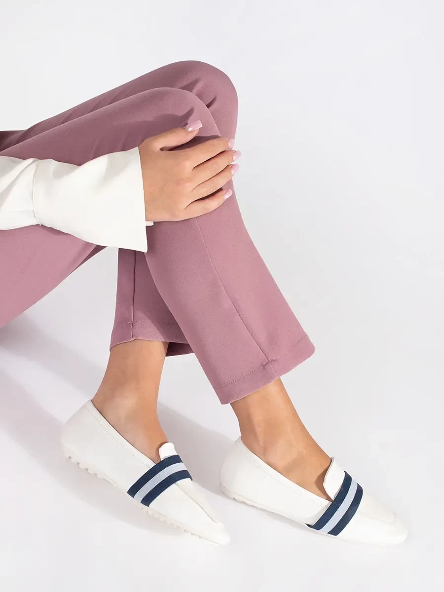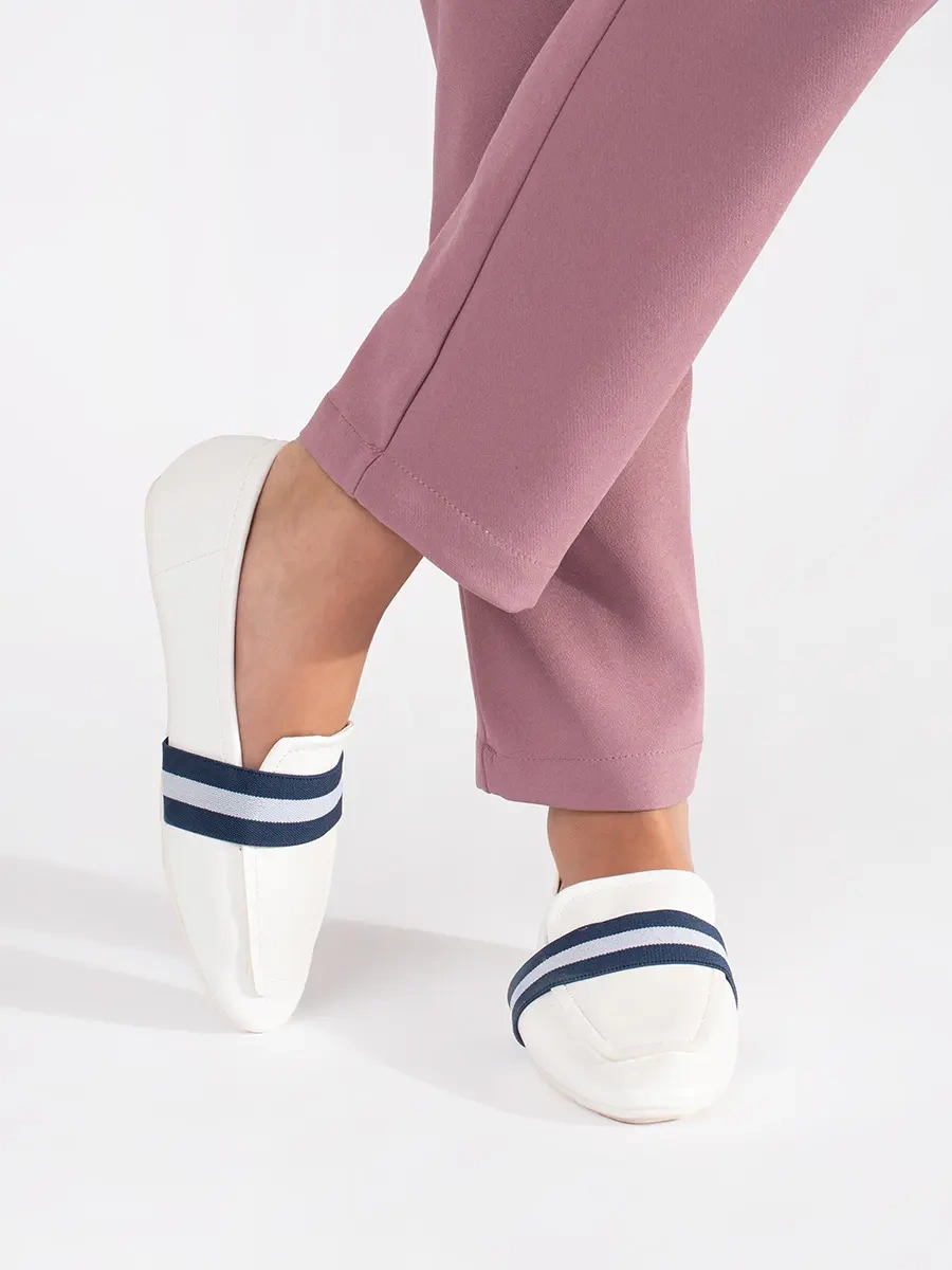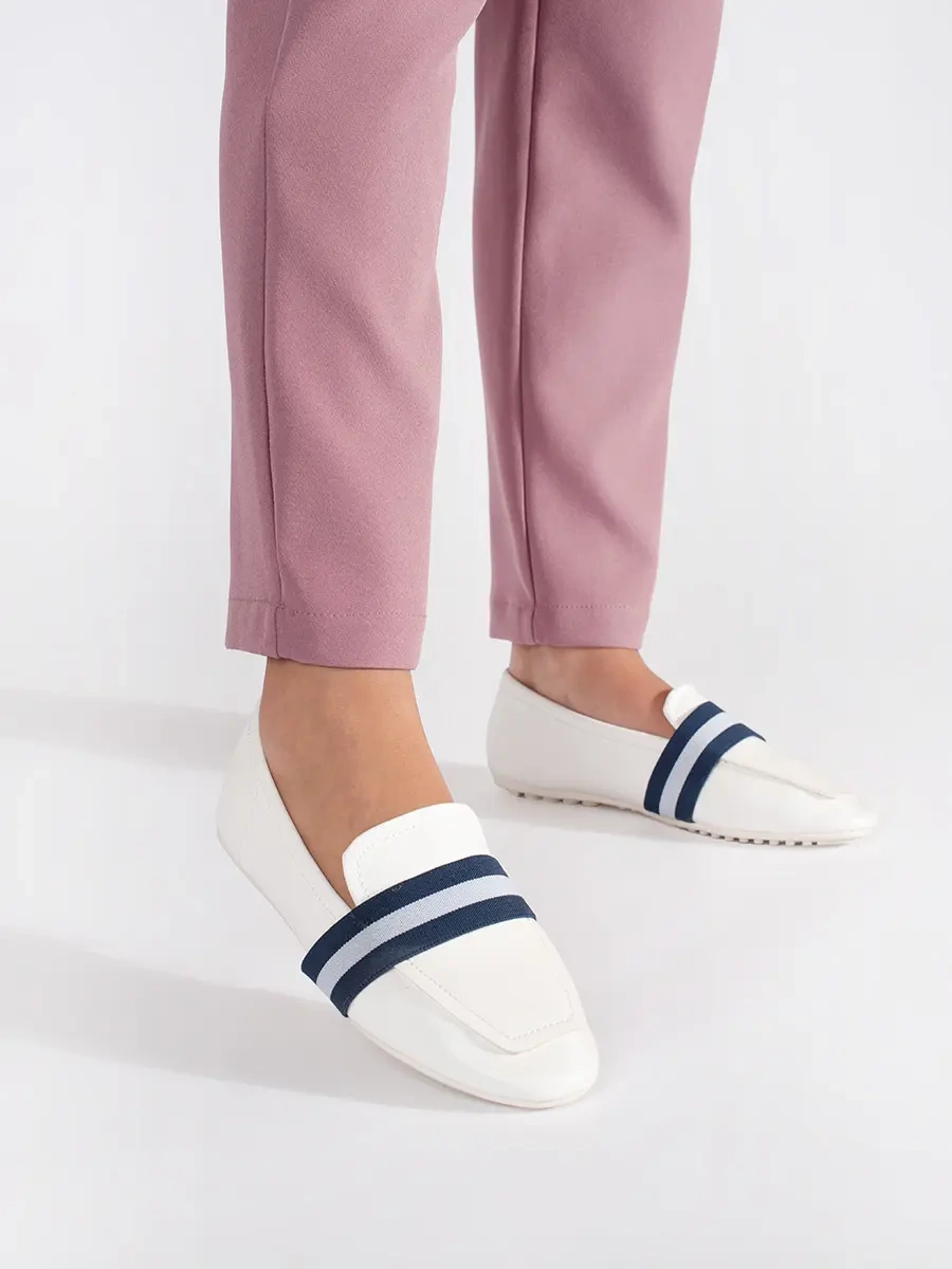 Excellent blue and white women's loafers without heel