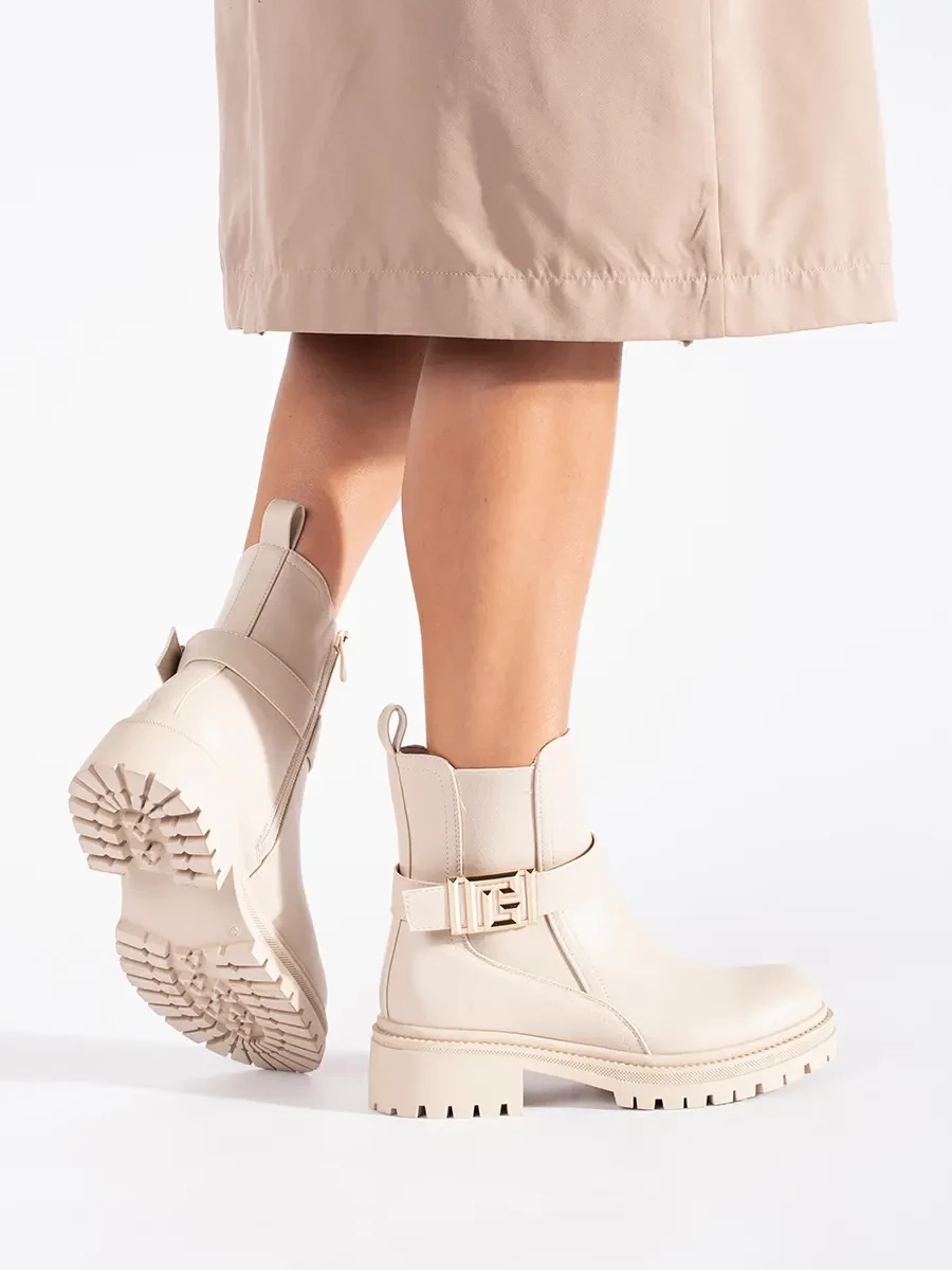 Excellent women's ankle boots beige on flat heel