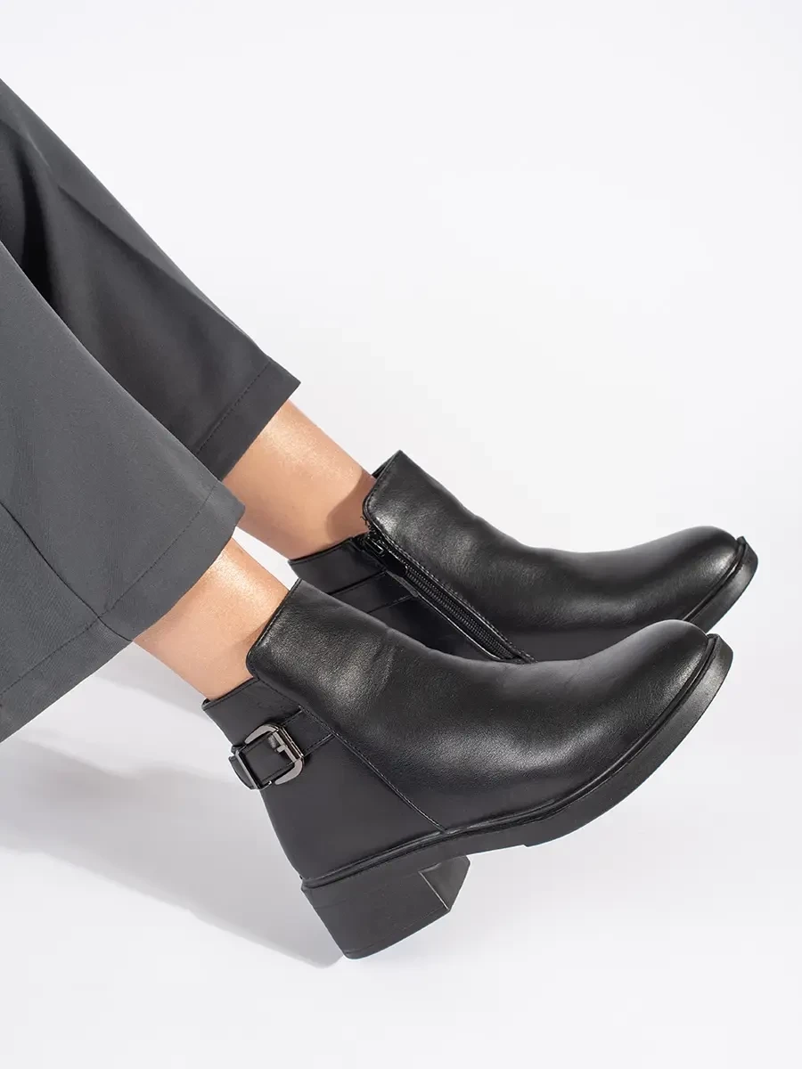 Excellent women's black ankle boots on a wide heel