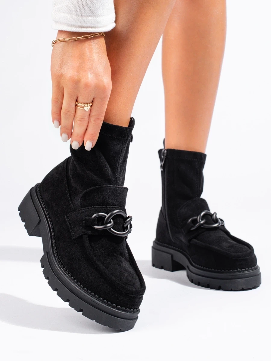 Fashionable women's ankle boots black flat heel