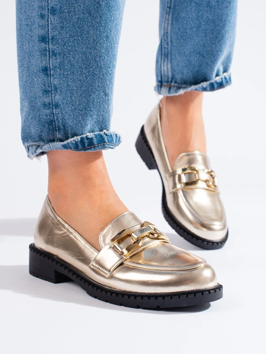 Luxurious gold platform loafers for women