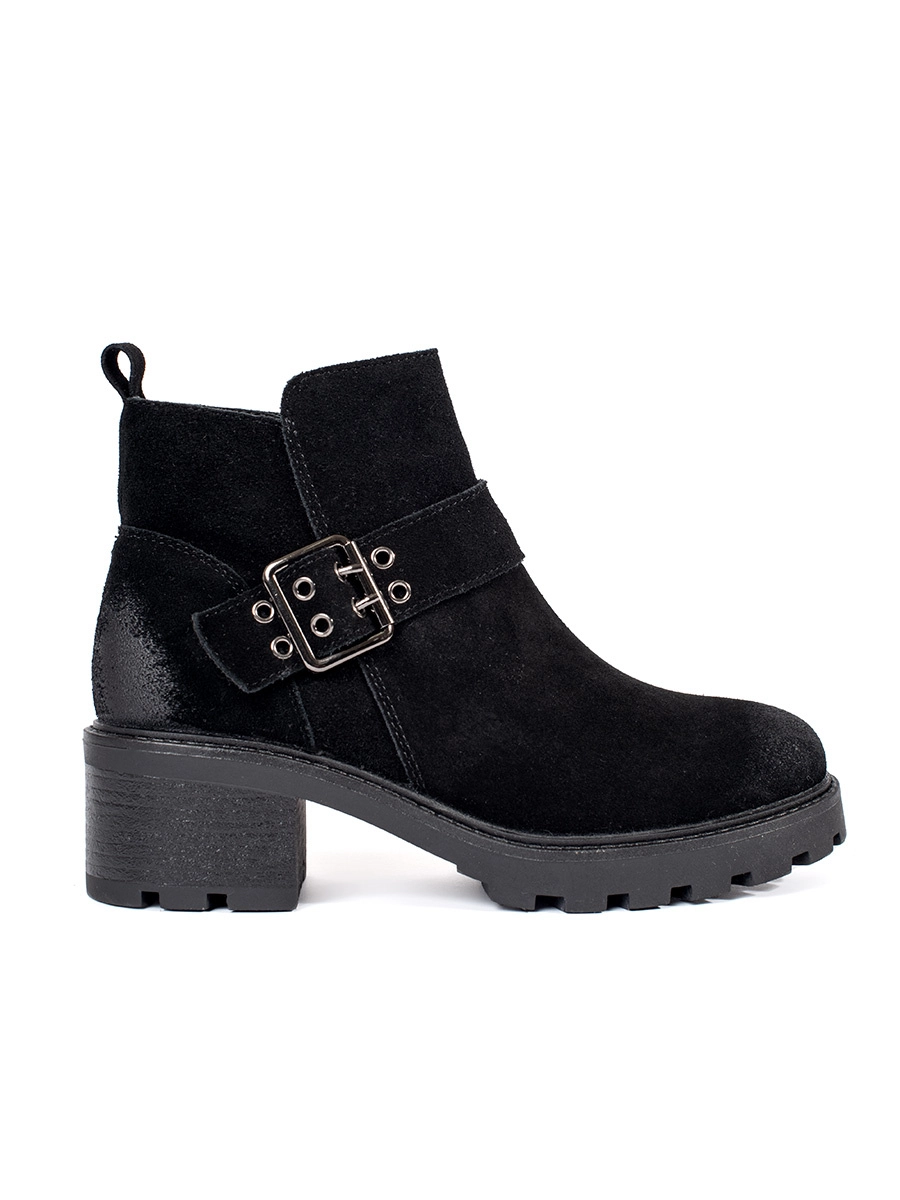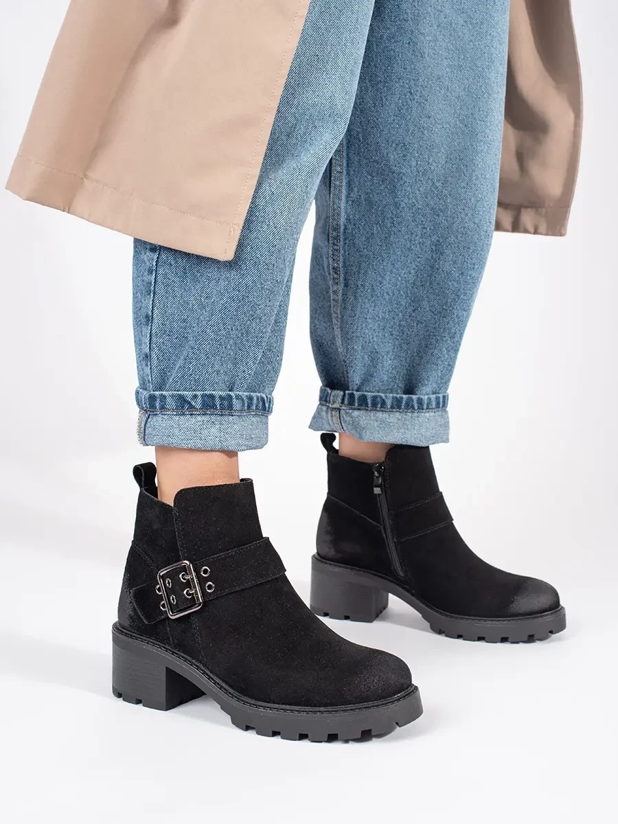 Luxury black women's ankle boots on wide heel