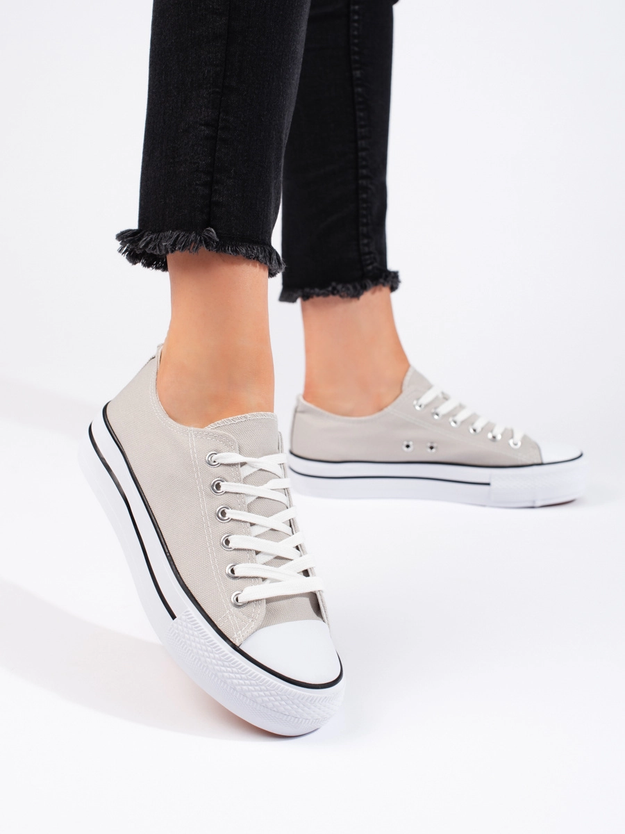 Modern women's grey sneakers without heel