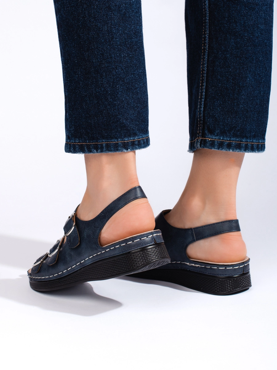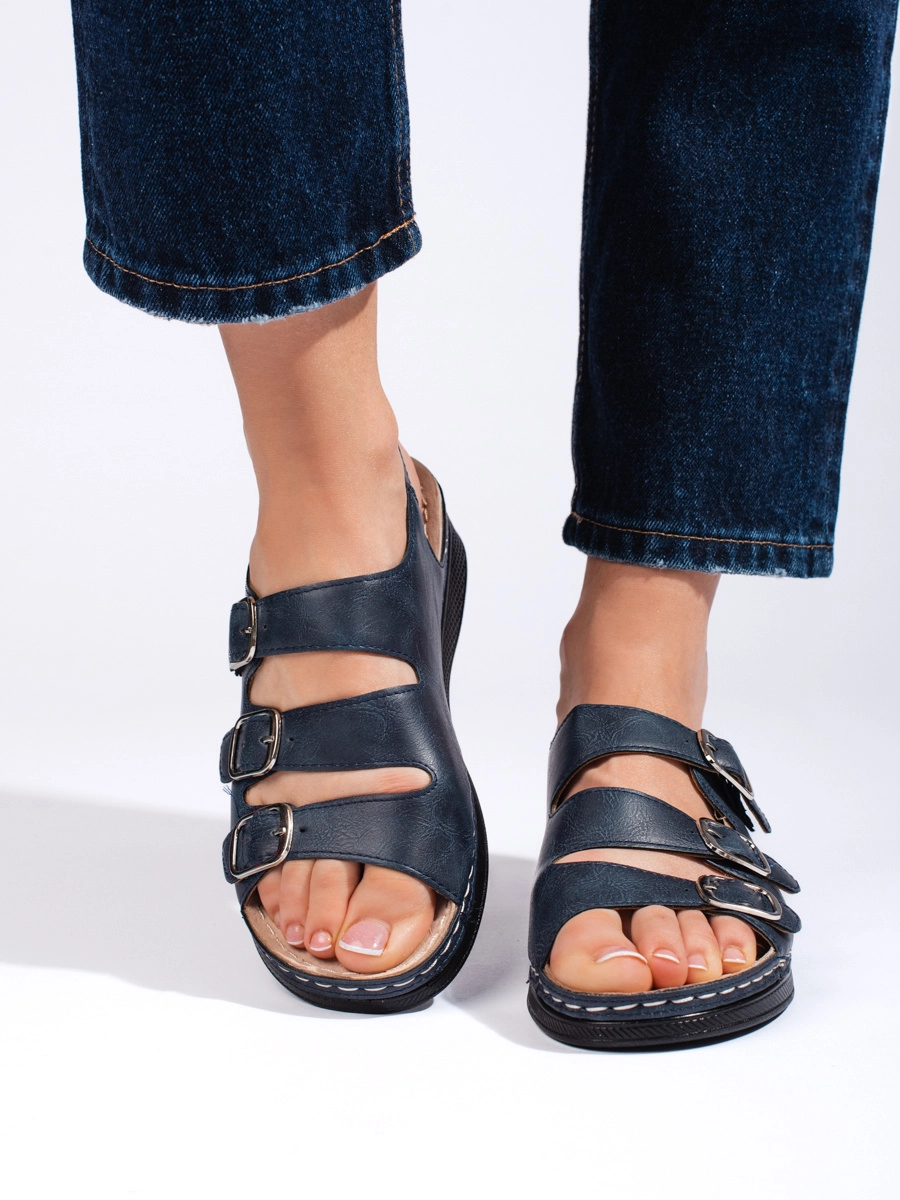 Modern women's sandals dark blue on wedge