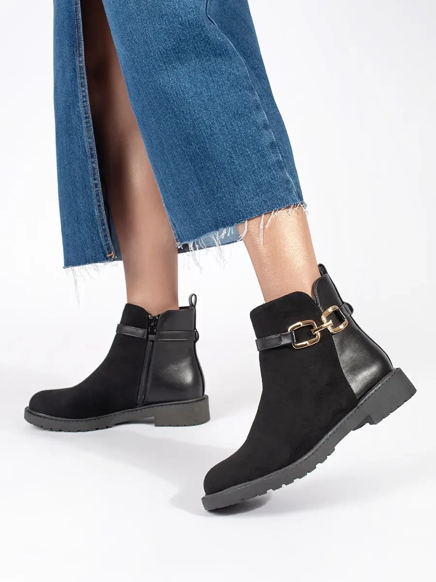 Nice women's black ankle boots on a wide heel