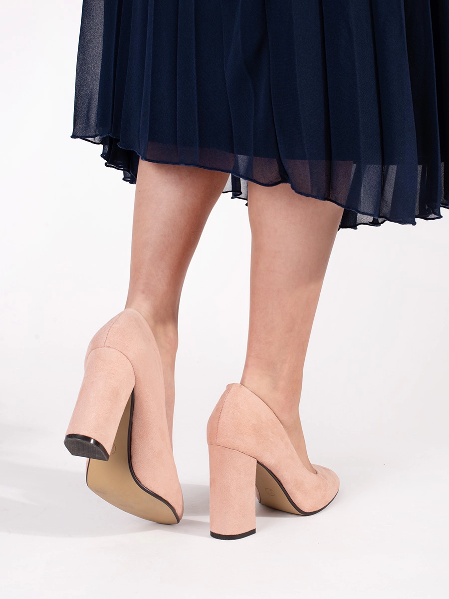 Original beige pumps for women on a wide heel