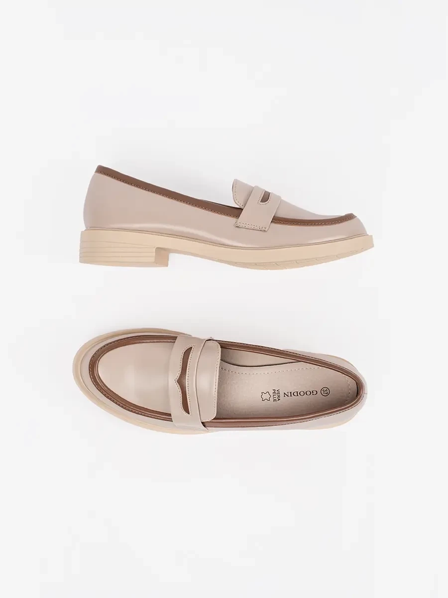 Original beige women's loafers without heel