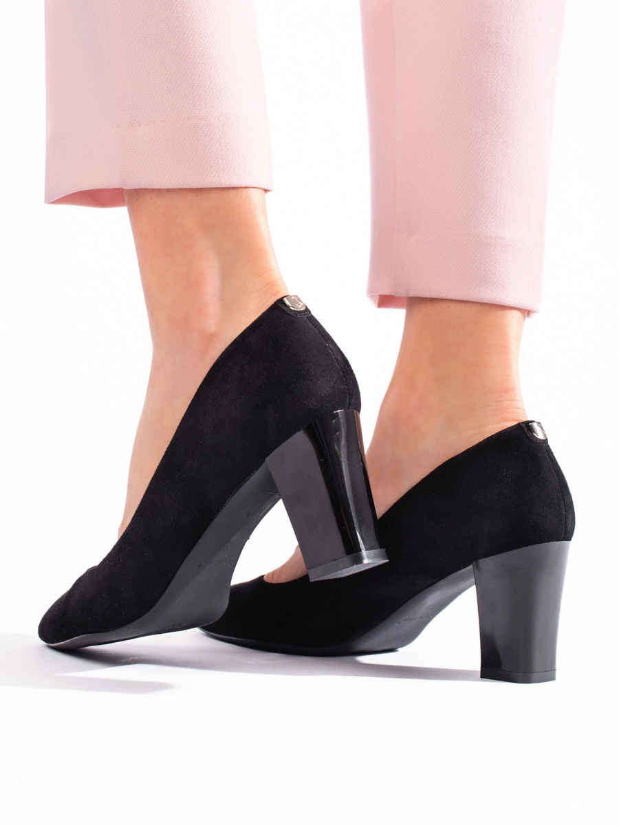 Original black pumps for women on a wide heel