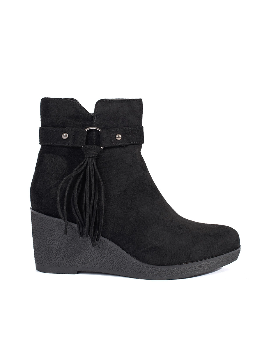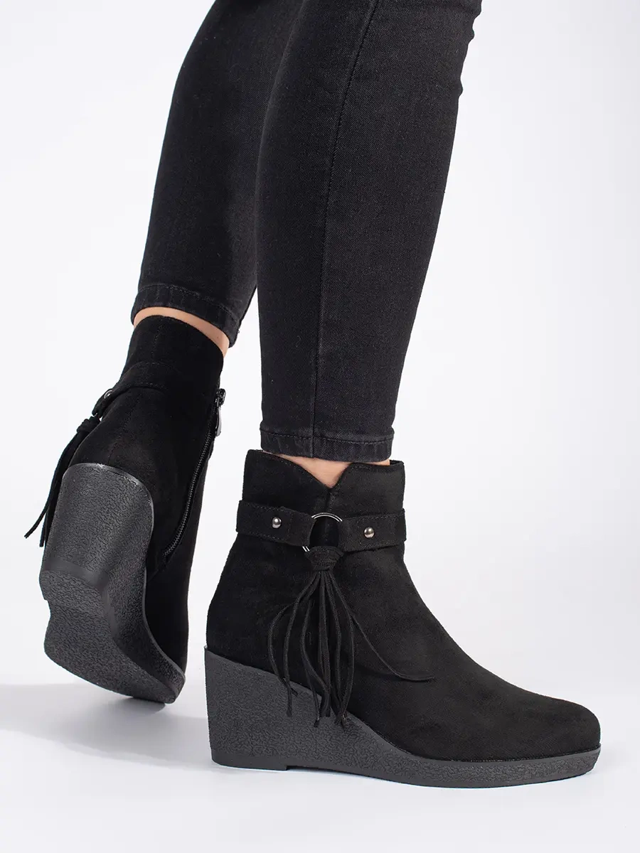 Practical black ankle boots for women on wedge