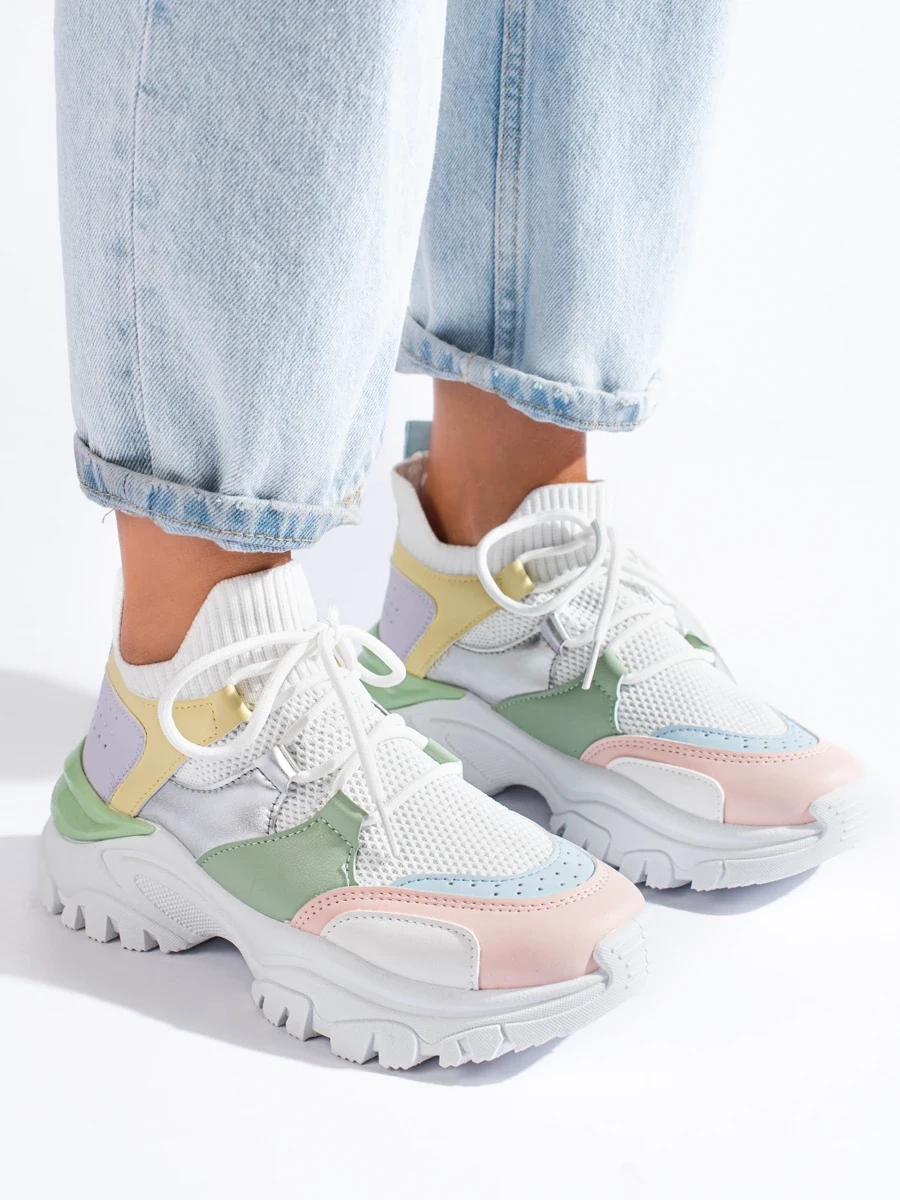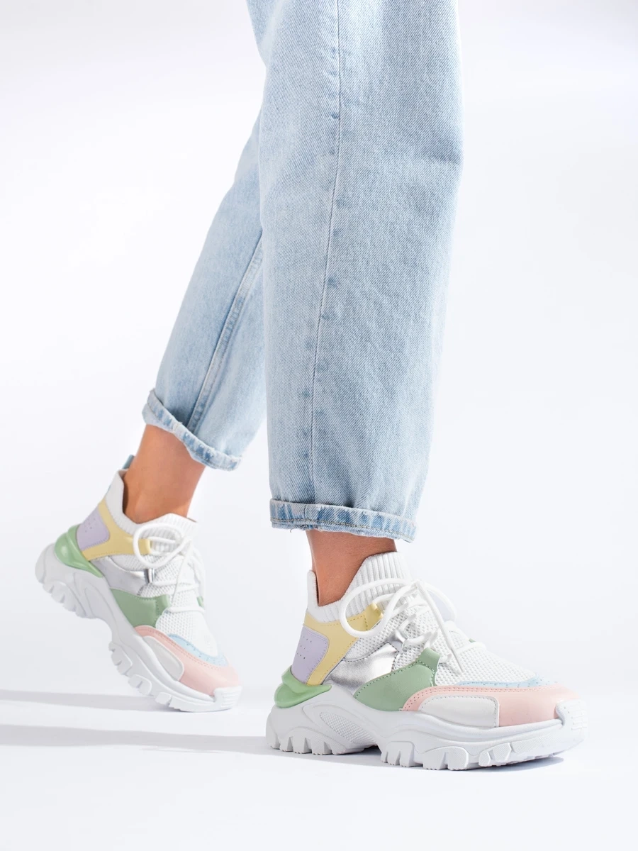 Practical colourful women's sneakers without heel