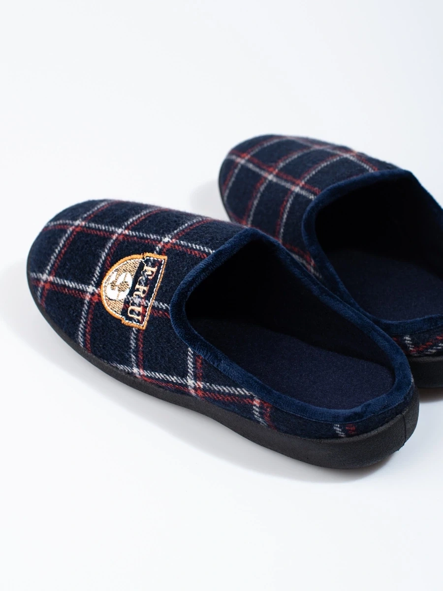 Practical men's dark blue slippers without heel