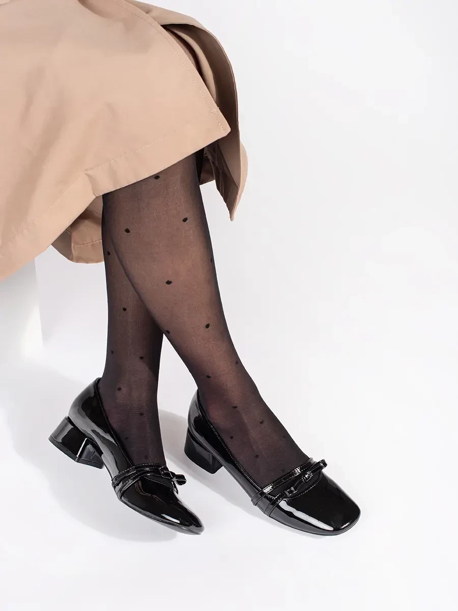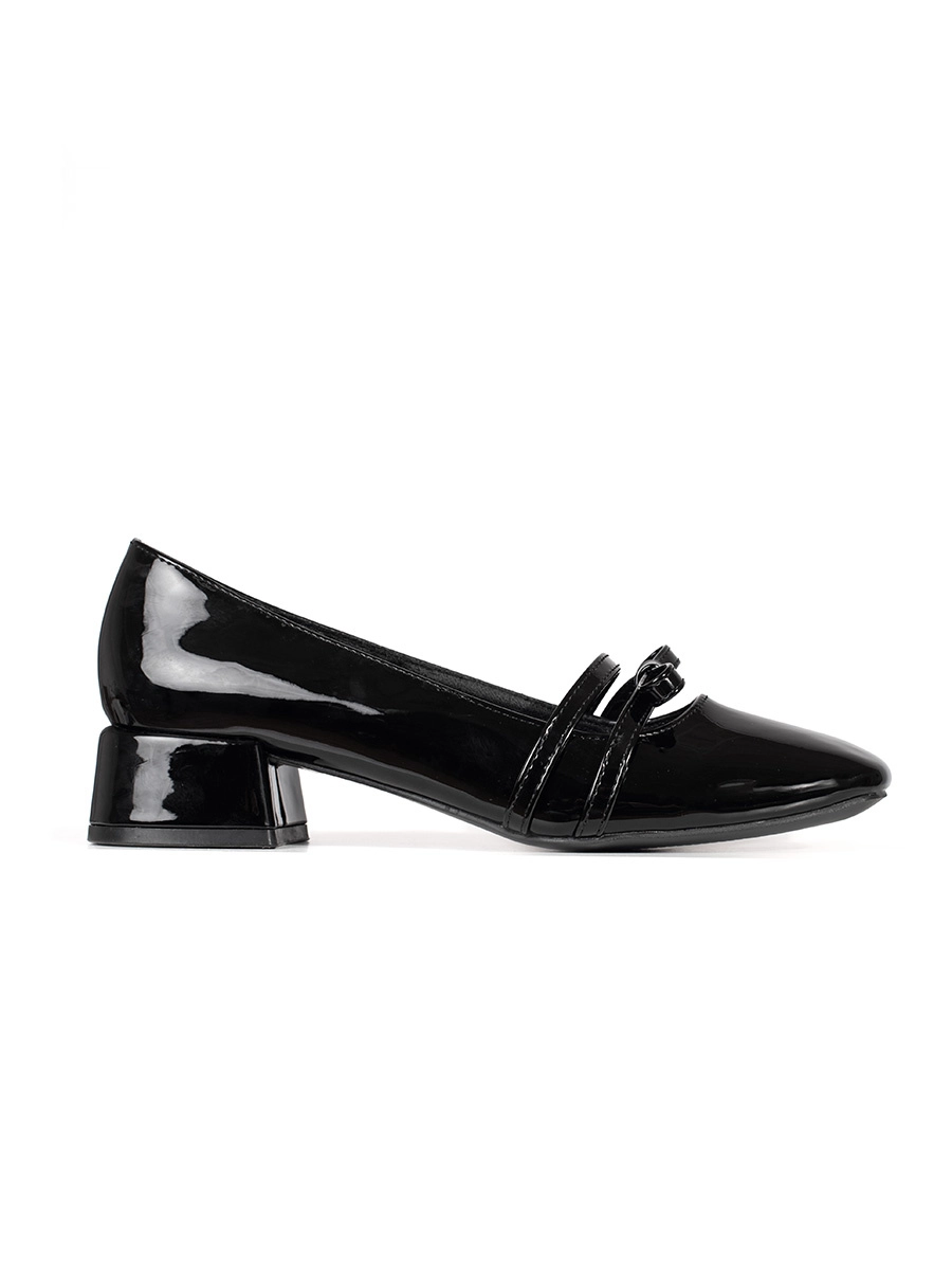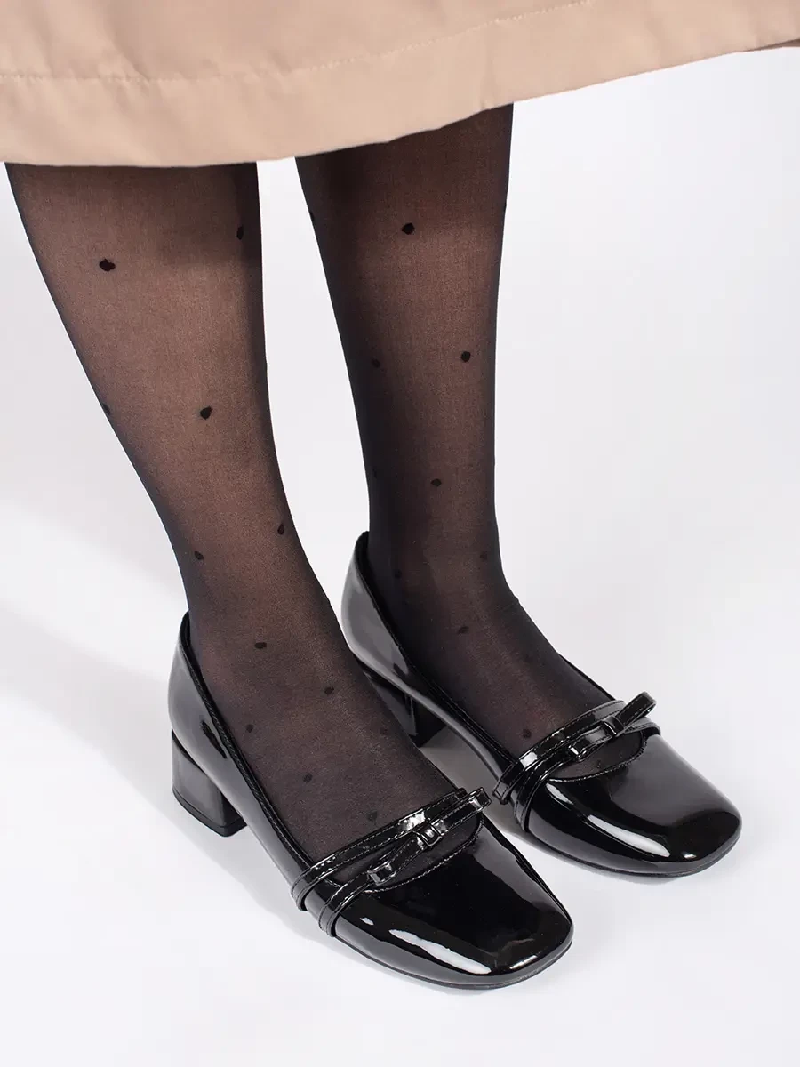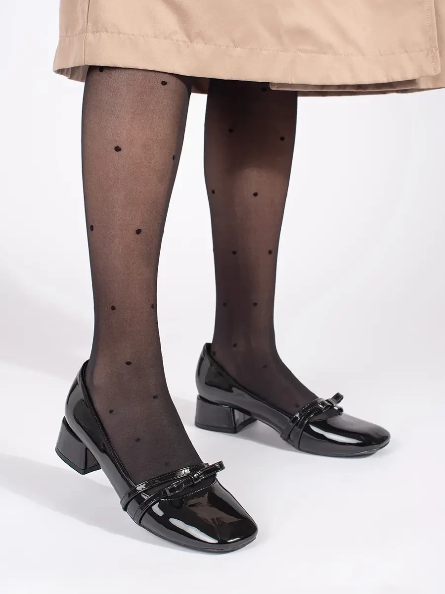 Practical women's black pumps on a wide heel