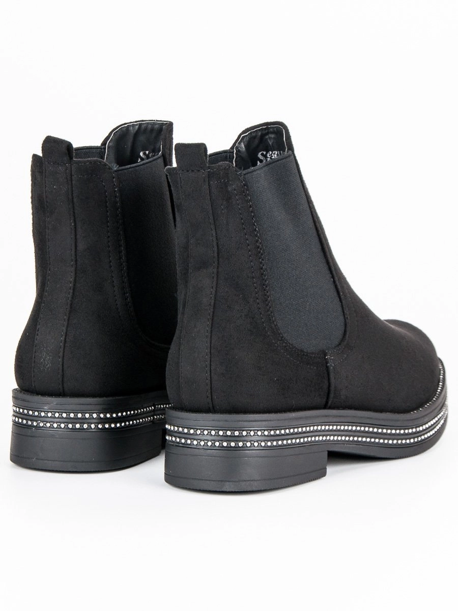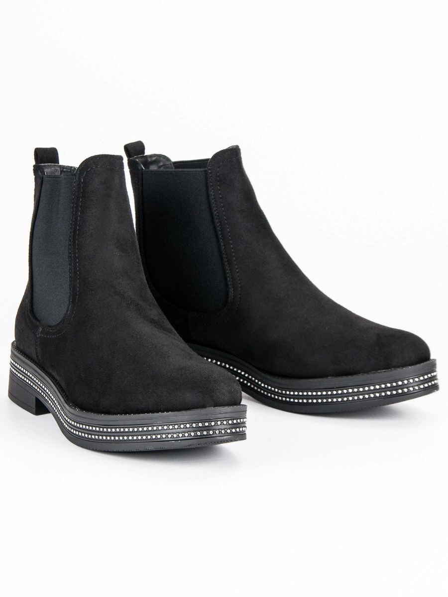 Classic black women's ankle boots on flat heel