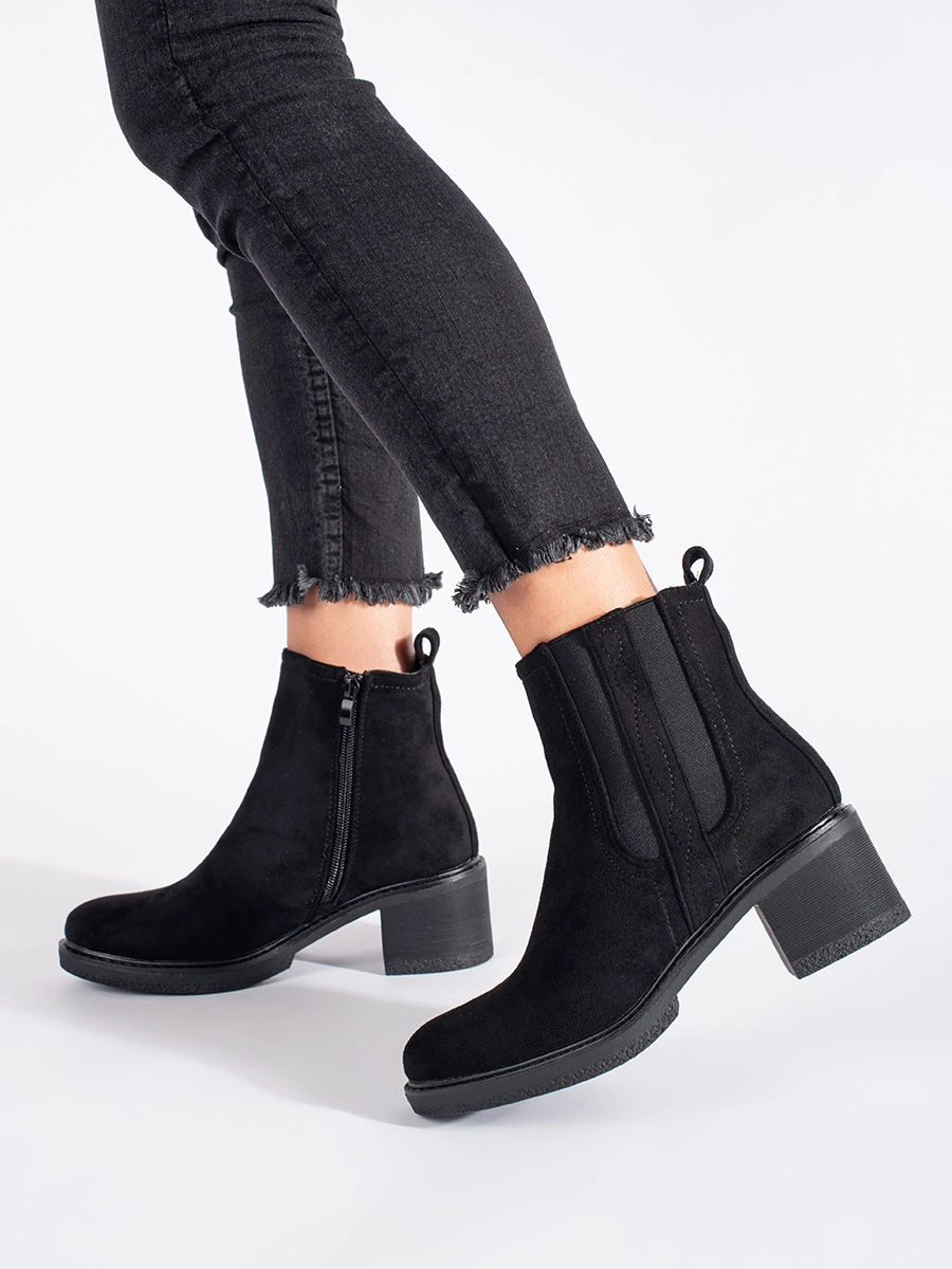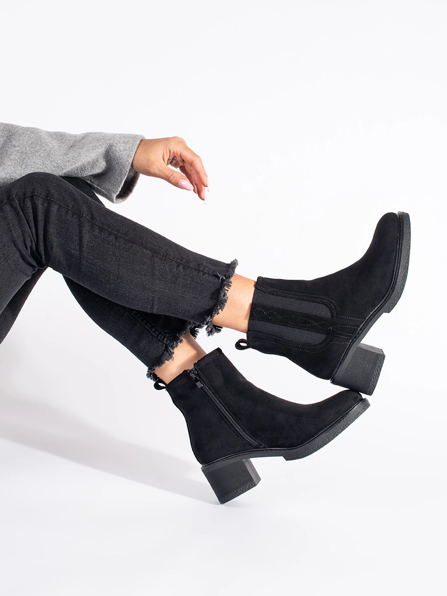 Cizme de gleznă la modă pentru femei, negre, pe un toc lat