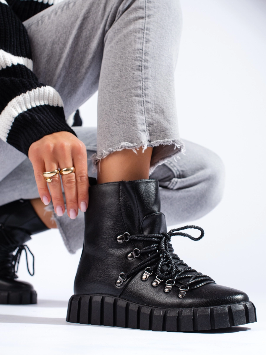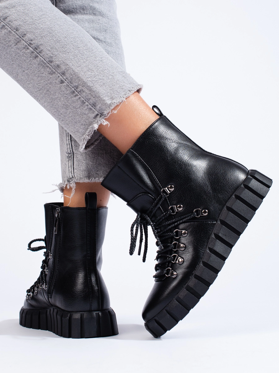 Cizme de gleznă unice pentru femei negru pe pană