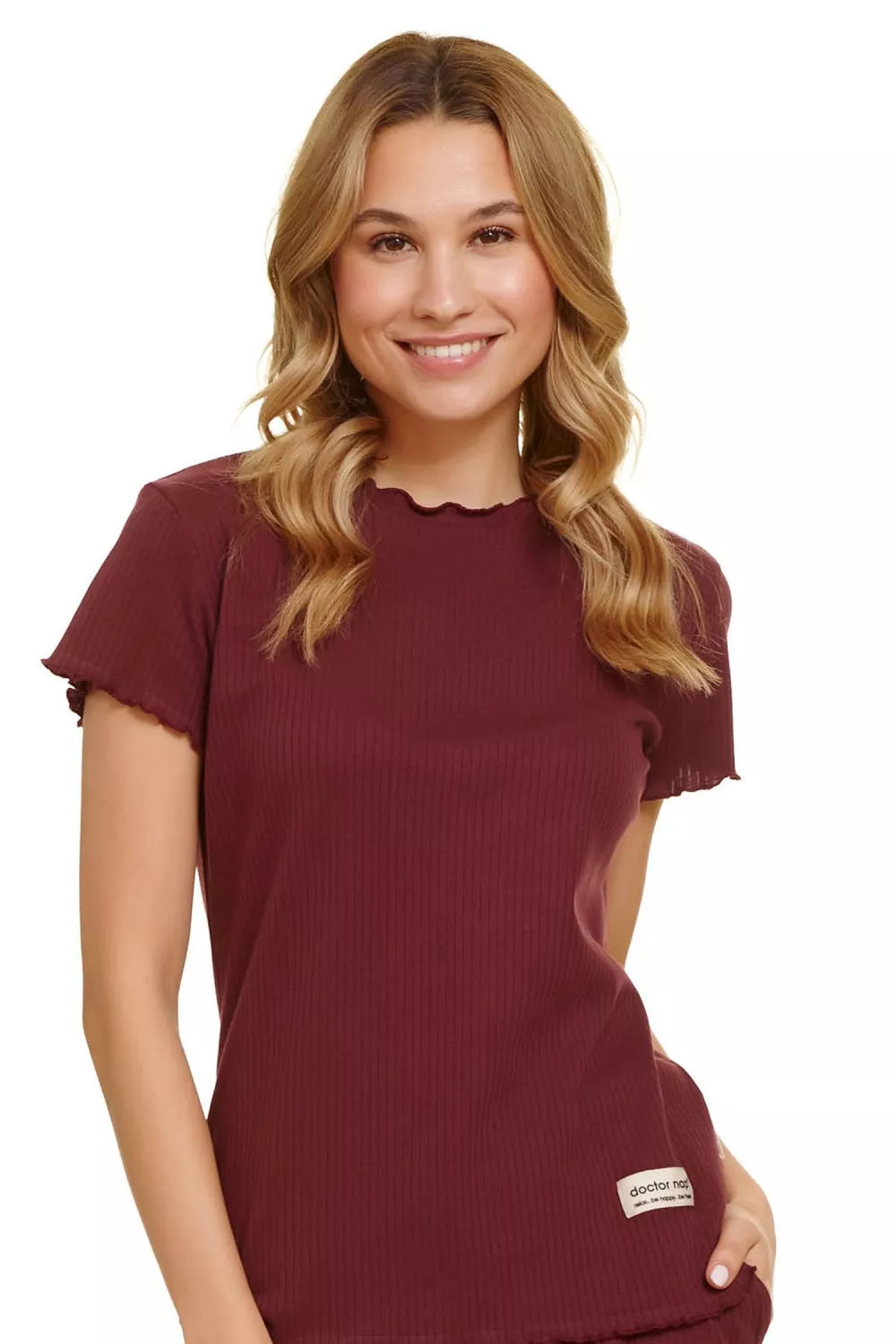 - cămașă de culoare burgundă cu mâneci scurte