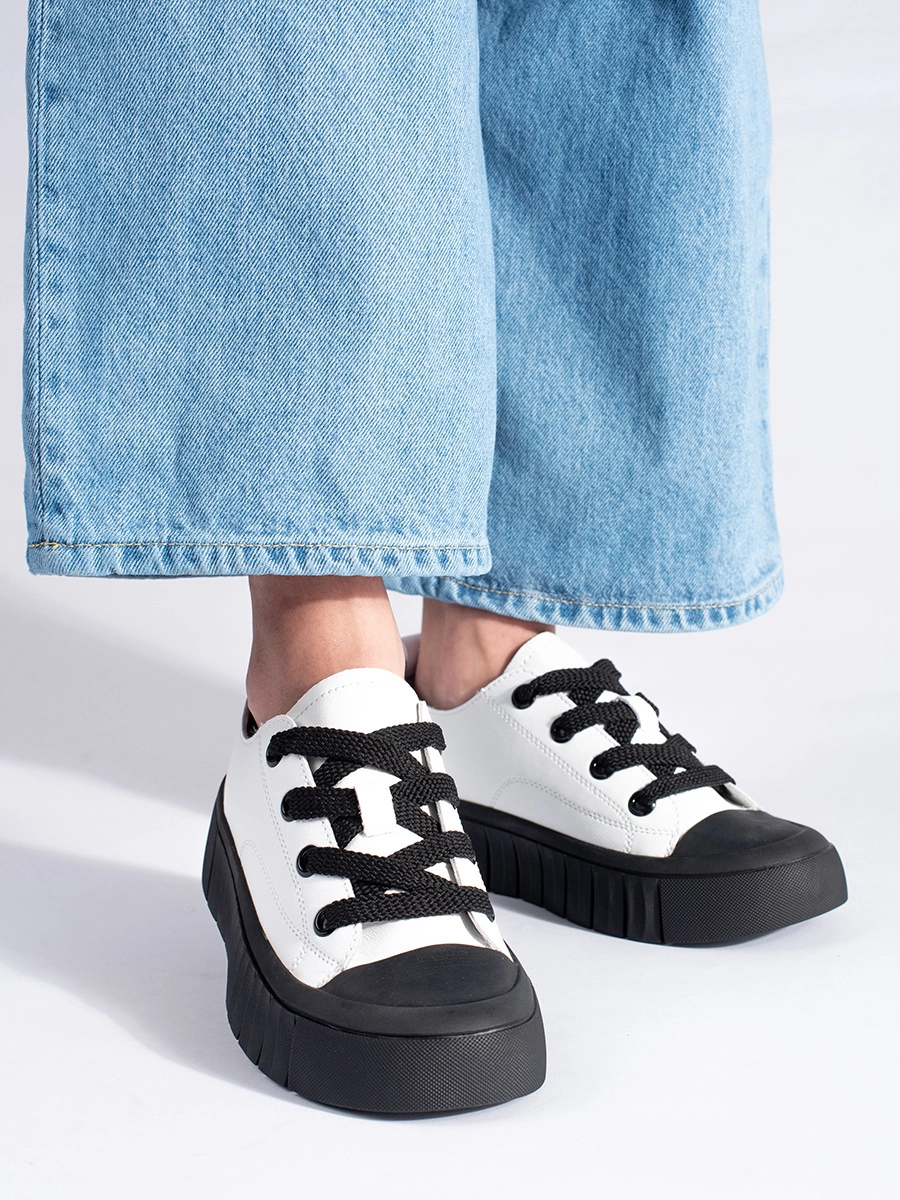 Trendy women's white platform sneakers