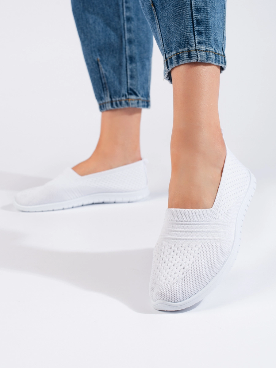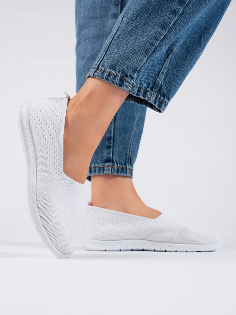 Trendy women's white sneakers without heel