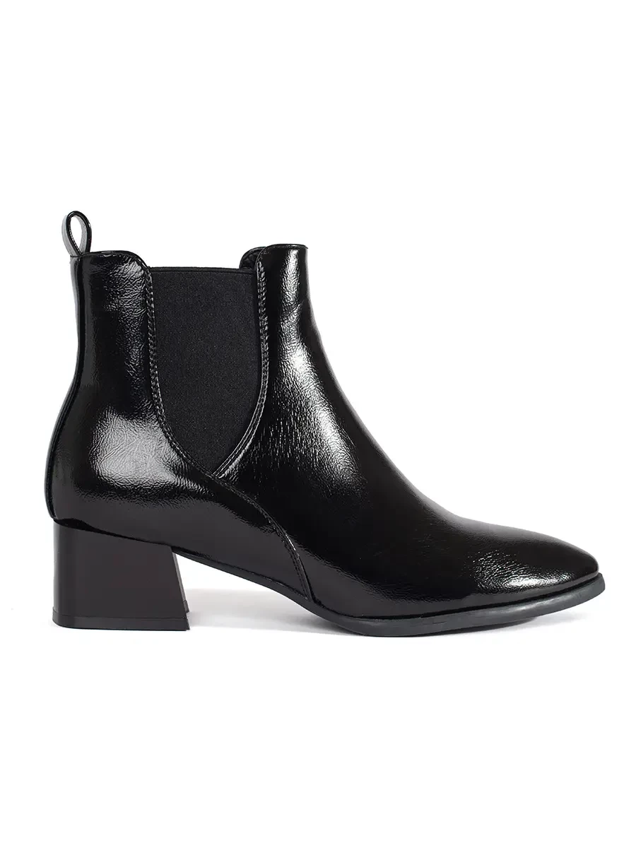 Unique women's black ankle boots on a wide heel