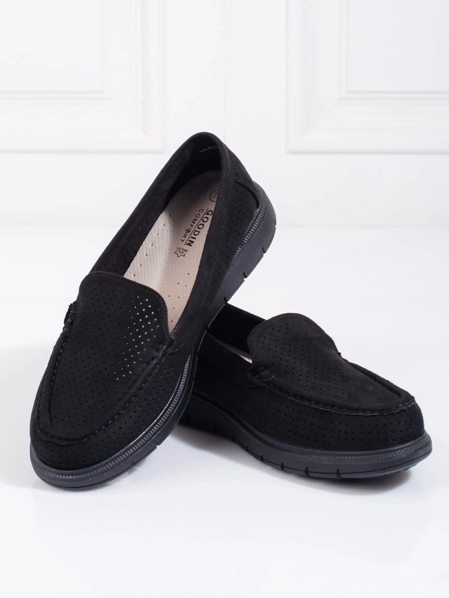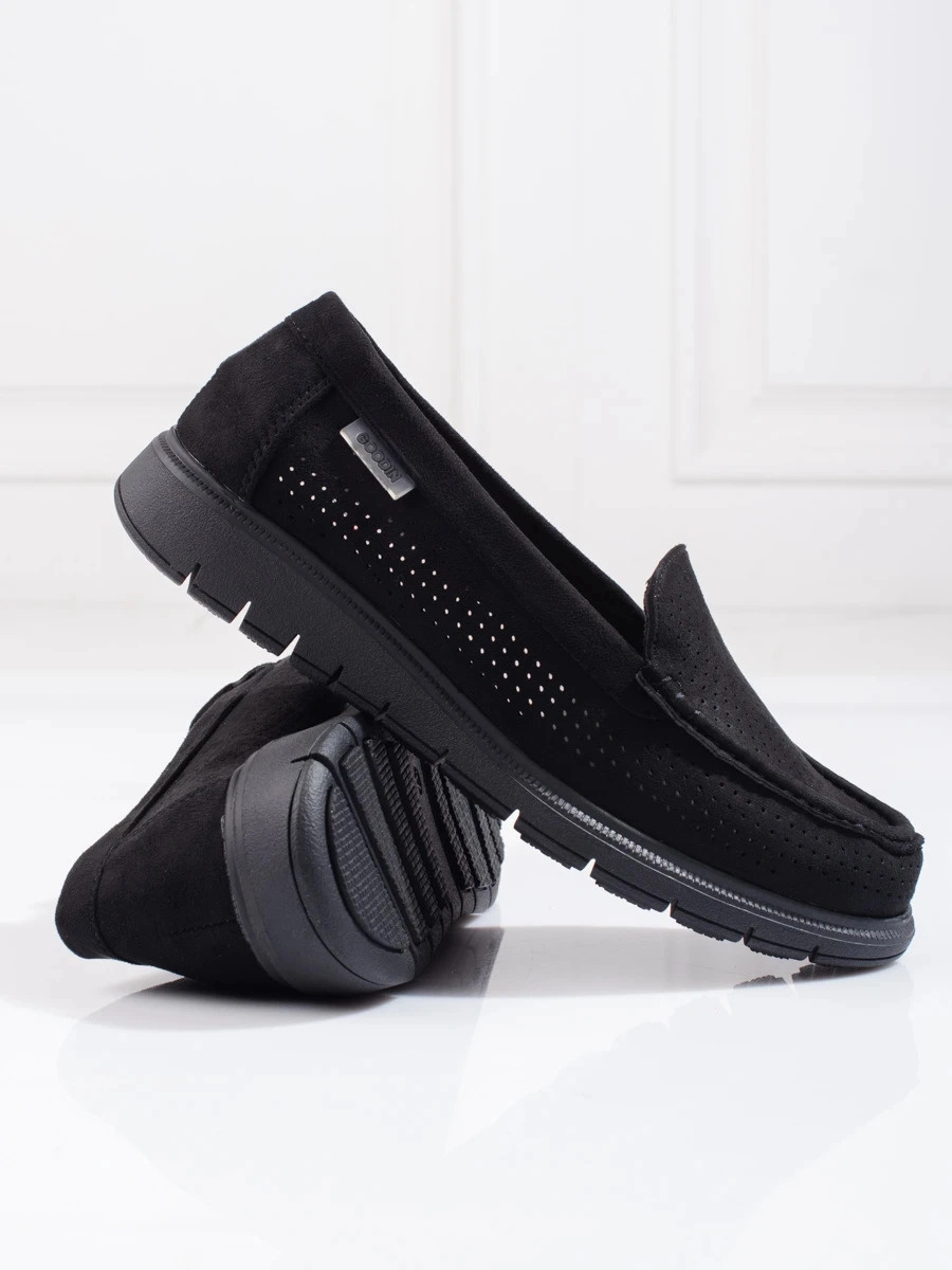 Unique women's black loafers without heel