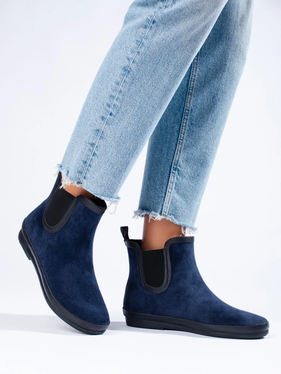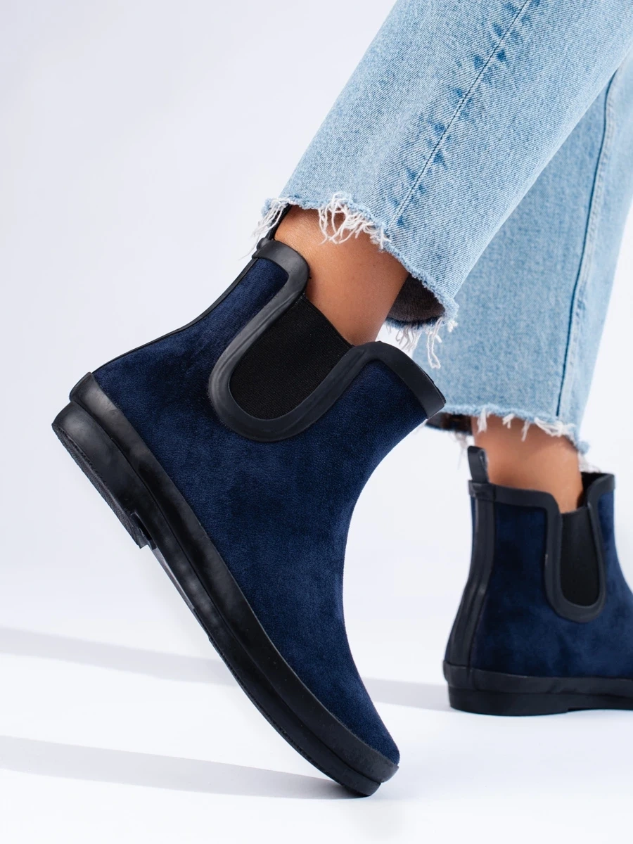 Unique women's dark blue flat heeled boots