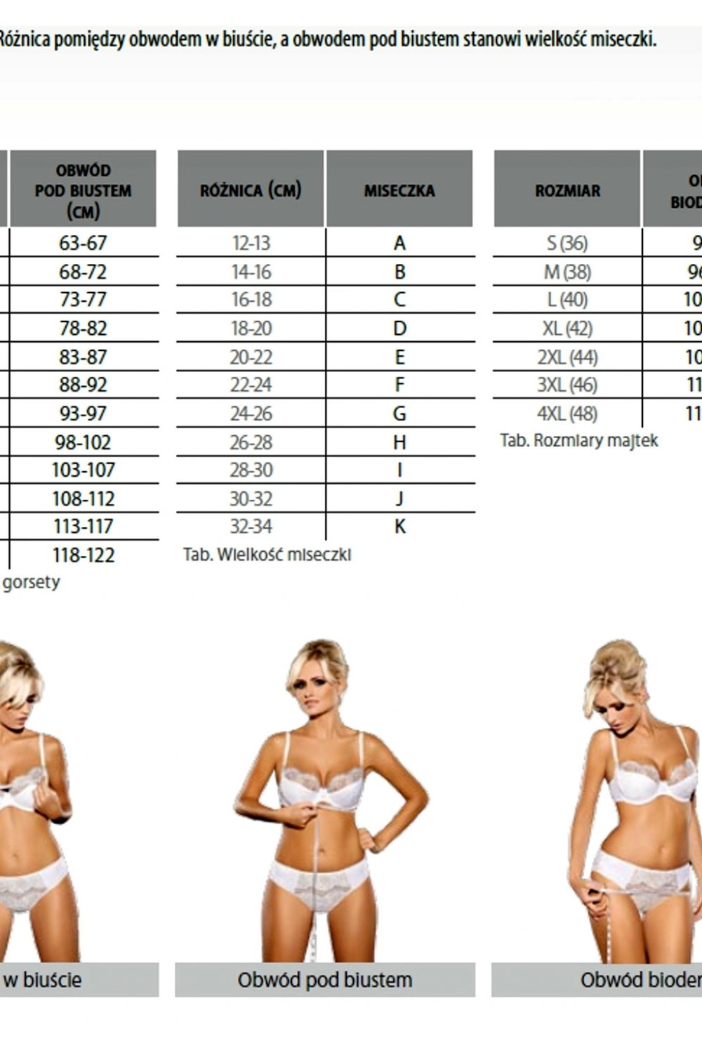 | Under-bust circumference (cm) | 63-67cm | 68-72cm | 73-77cm | 78-82cm | 83-87cm | 88-92cm | 93-97cm | 98-102cm | 103-107cm | 108-112cm |
