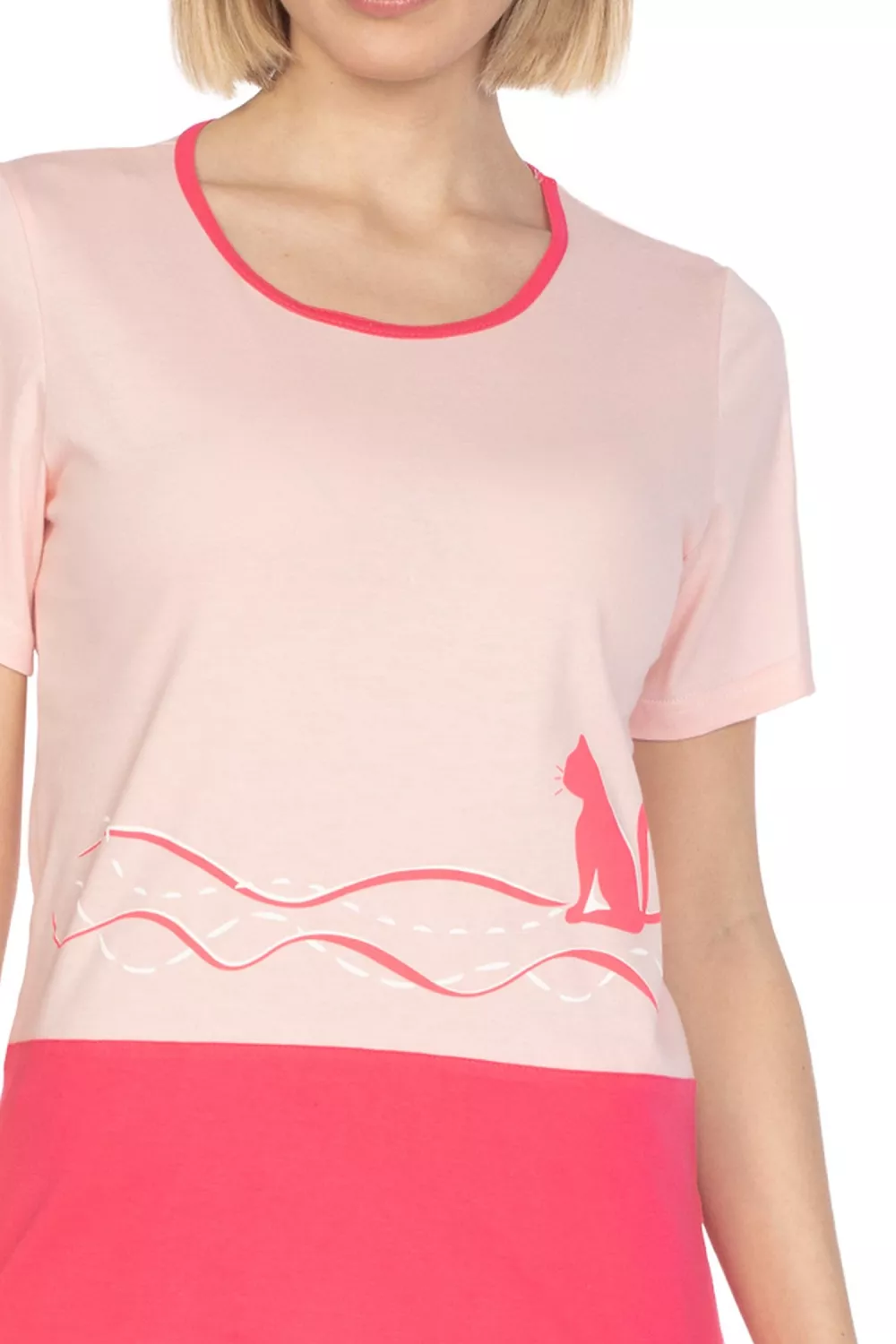 - neckline, print and bottom of the shirt in the colour of the trousers