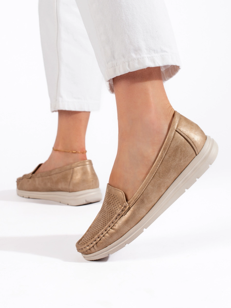 Women's modern gold loafers without heel
